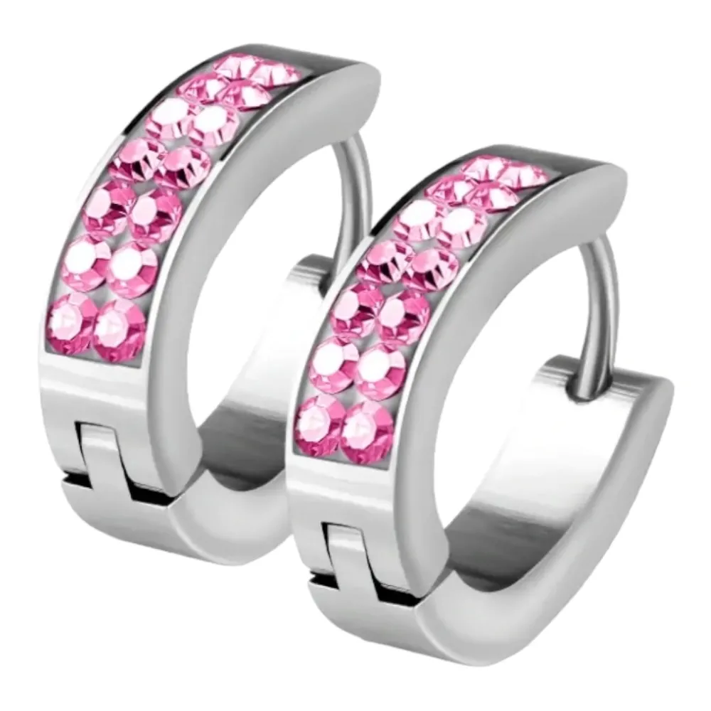 Dámske jemné náušnice z chirurgickej ocele zdobené ružovými krištáľmi. Vhodné na každodenné nosenie.
