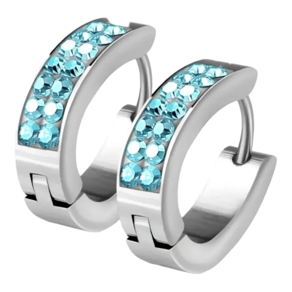 Dámske jemné náušnice z chirurgickej ocele zdobené svetlomodrými krištáľmi. Vhodné na každodenné nosenie.