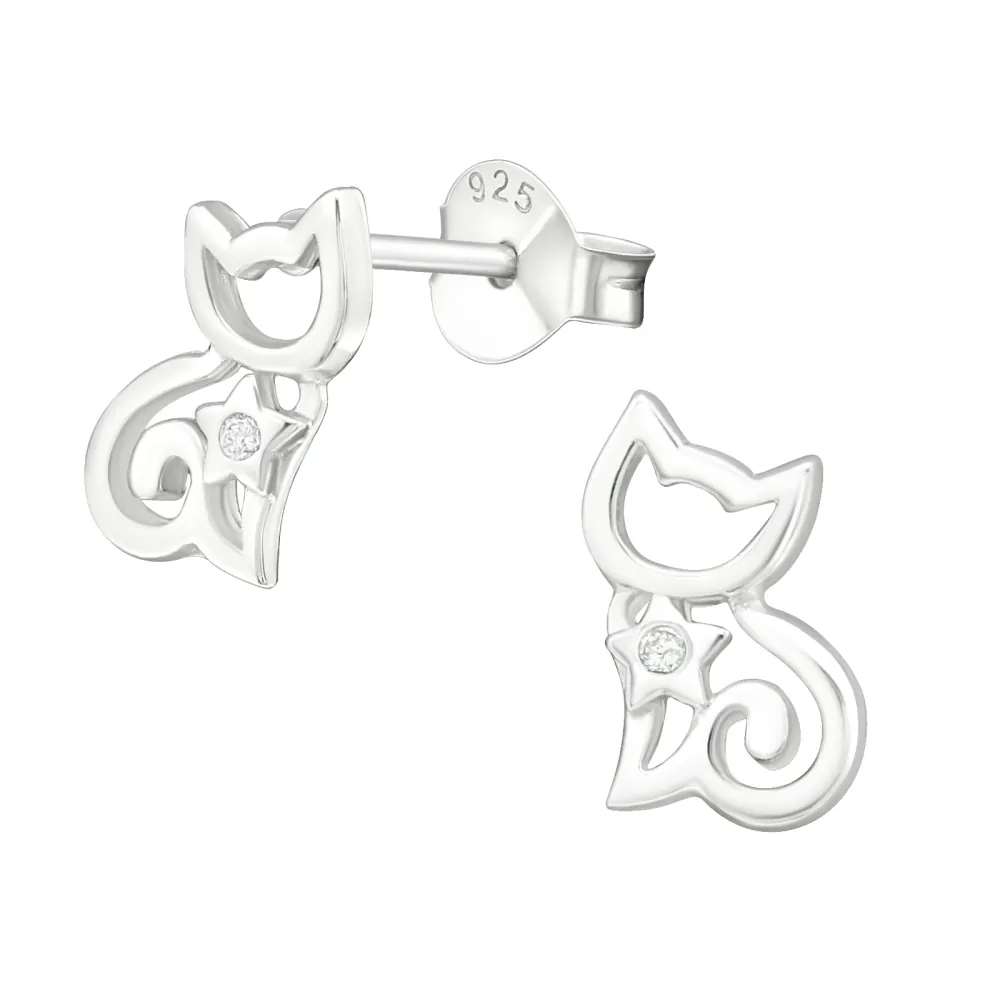 Glory strieborné náušnice Mačka so zirkónom