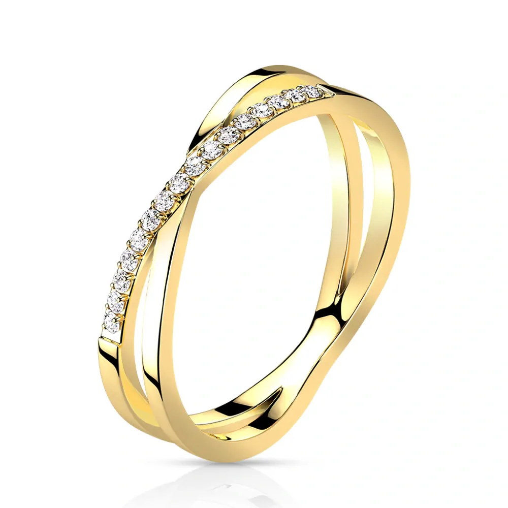 Štýlový a elegantný prsteň z chirurgickej ocele zdobený zirkónmi. Vhodný na každodenné nosenie.