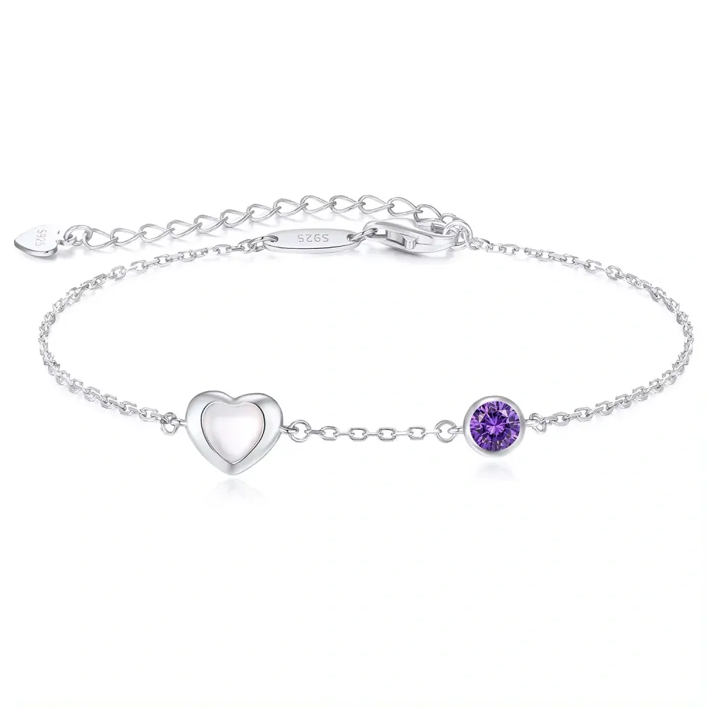 Strieborný náramok Happy s perleťovým srdiečkom a fialovým zirkónom