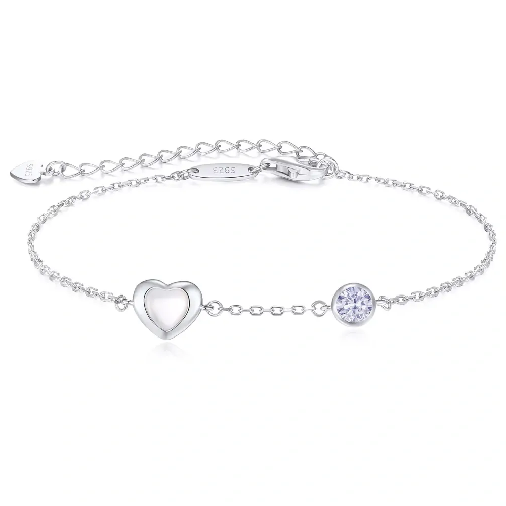 Strieborný náramok Happy s perleťovým srdiečkom a svetlofialovým zirkónom